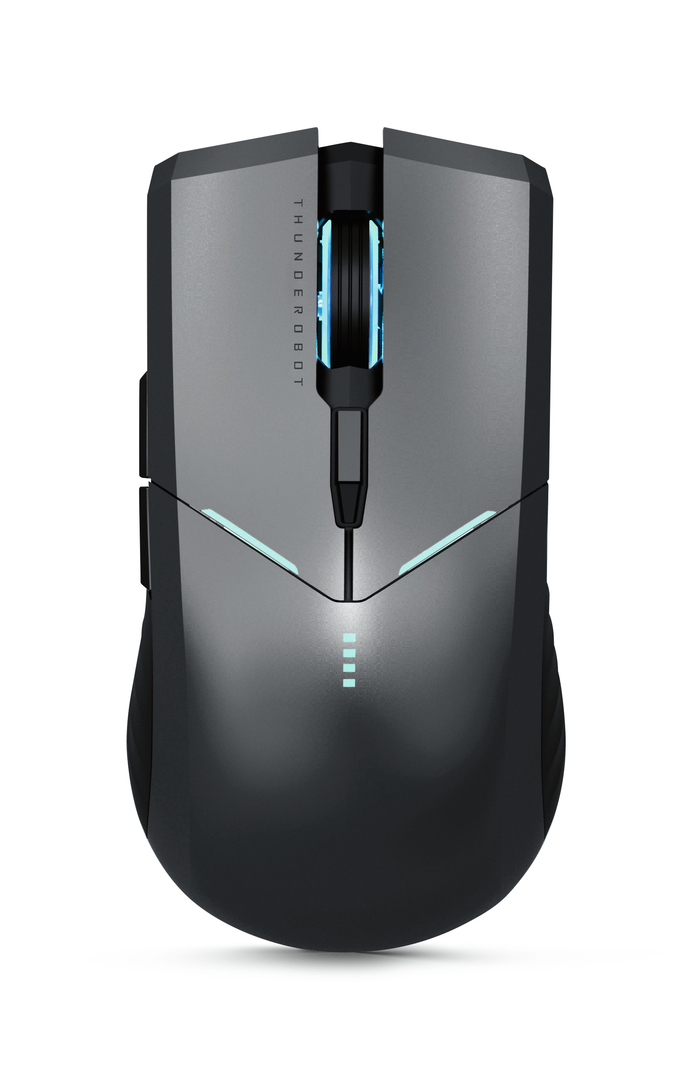 The ThundeRobot ML703 rechargeable mouse has a 16,000 DPI sensor, 2.4G connectivity and a wired dual-mode connection. Gamers always have the battery charge status in sight to enable a prompt response when the mouse needs to be recharged. The mouse emits light along the bottom, improving the gaming atmosphere. Its design was inspired by American muscle cars, as evidenced by the conspicuously bevelled edges.