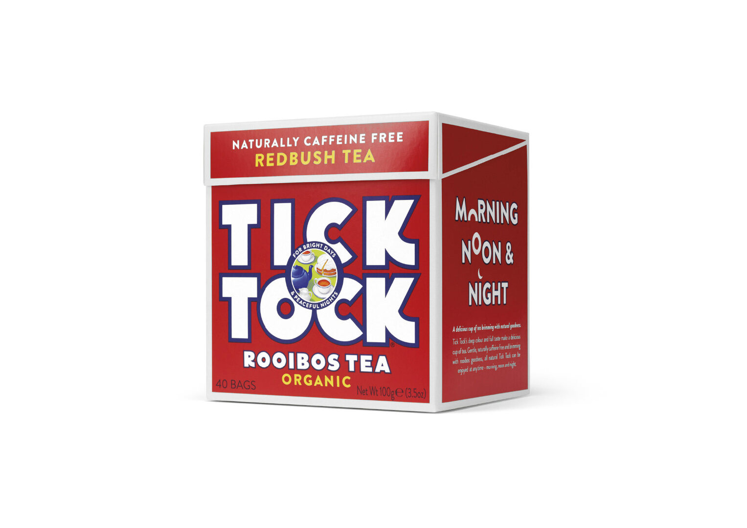 Tick Tock is a well-known rooibos tea brand from the UK. The challenge was to communicate the brand’s rich heritage and the natural benefits of rooibos while respecting the iconic graphics. The new packaging design updated the visual language, building on the most unmistakable aspects of the brand identity – bright colours, 1930s-influenced typography and nostalgic illustrations. Newly commissioned tea-time illustrations and the phrase “morning noon & night” are placed playfully on the side of the packaging. In addition, an elevated “1903” and “Rooibos” assert the brand’s role as a cultivator of rooibos.