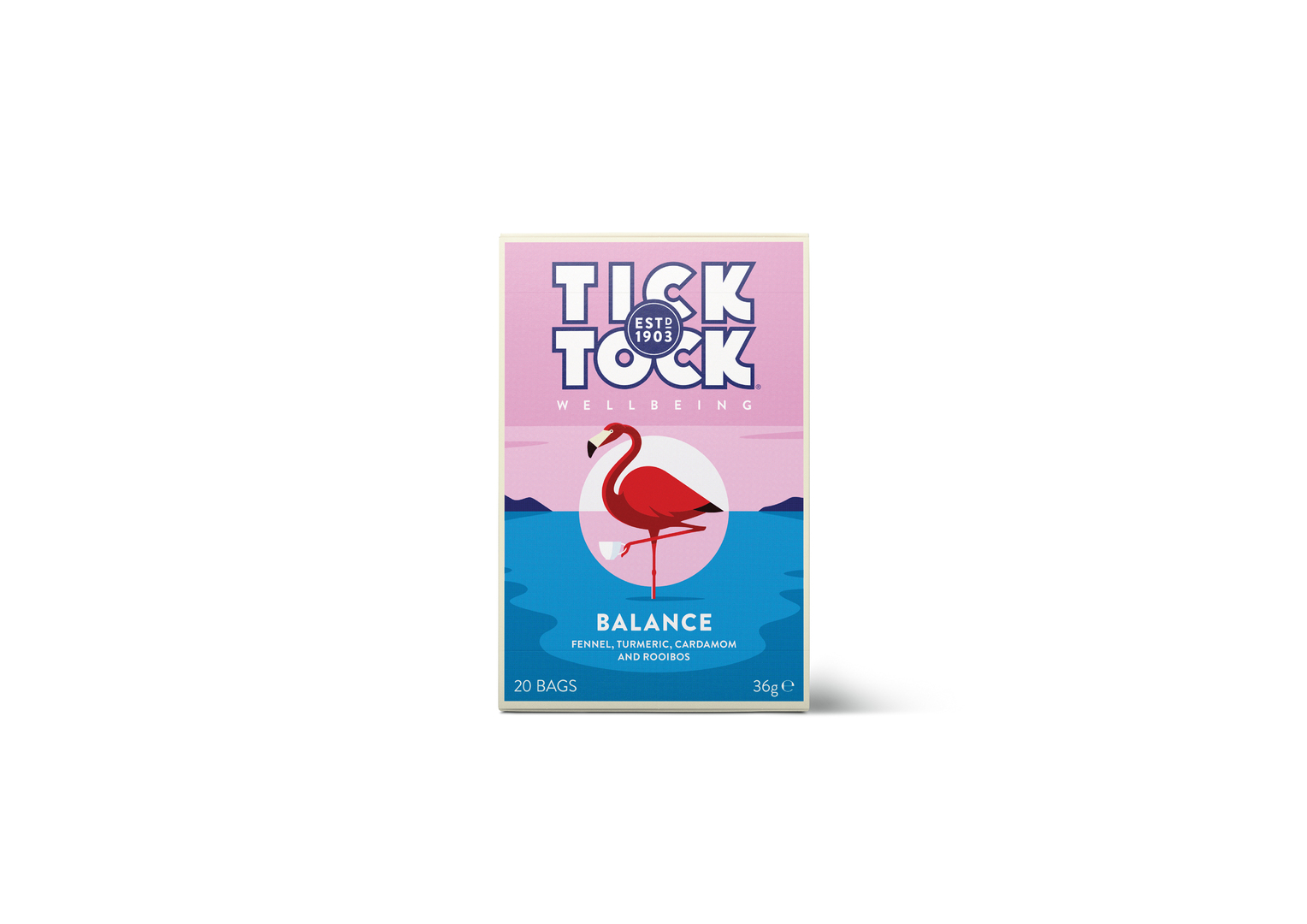 This packaging for the renowned British tea brand Tick Tock has been developed for a new range of caffeine-free herbal teas: “Balance”, for helping body and mind maintain their natural poise; “Bounce”, to put a spring in your step; and “Bedtime”, a calming blend for relaxing and unwinding. The solution builds on the brand’s identity and bright colours, a 1930s-influenced typography and the roundel illustrations from the core Tick Tock Rooibos range. The design uses the existing logo and adds newly commissioned animal illustrations, with each animal holding a cup of tea to build on the brand’s core message.