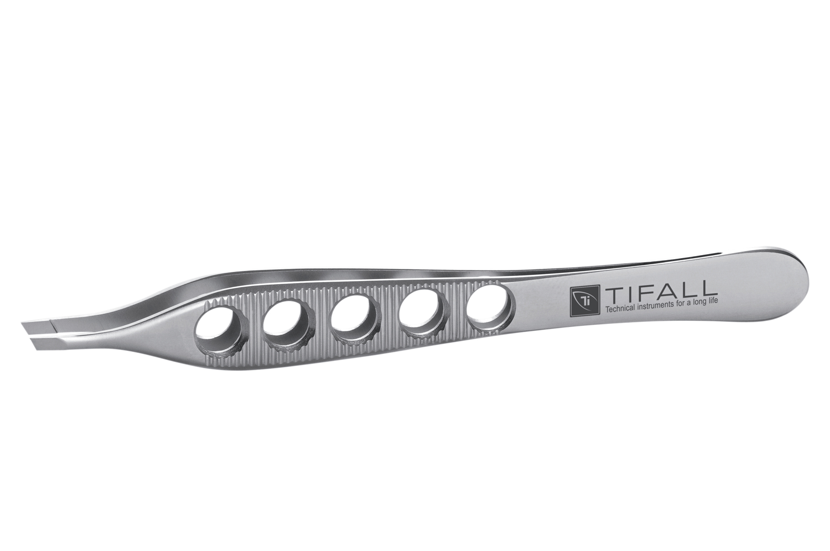 These tweezers are produced by a manufacturer of surgical instruments. All components are made from high-quality, surgical stainless steel and can be easily disinfected. Thanks to their materiality and workmanship, the tweezers maintain their shape, flexibility and clamping ability for years to come. The corrugated handle ensures a firm grip, while the ergonomic shape of the tweezers – in terms of size, weight and performance – is suitable for all users.