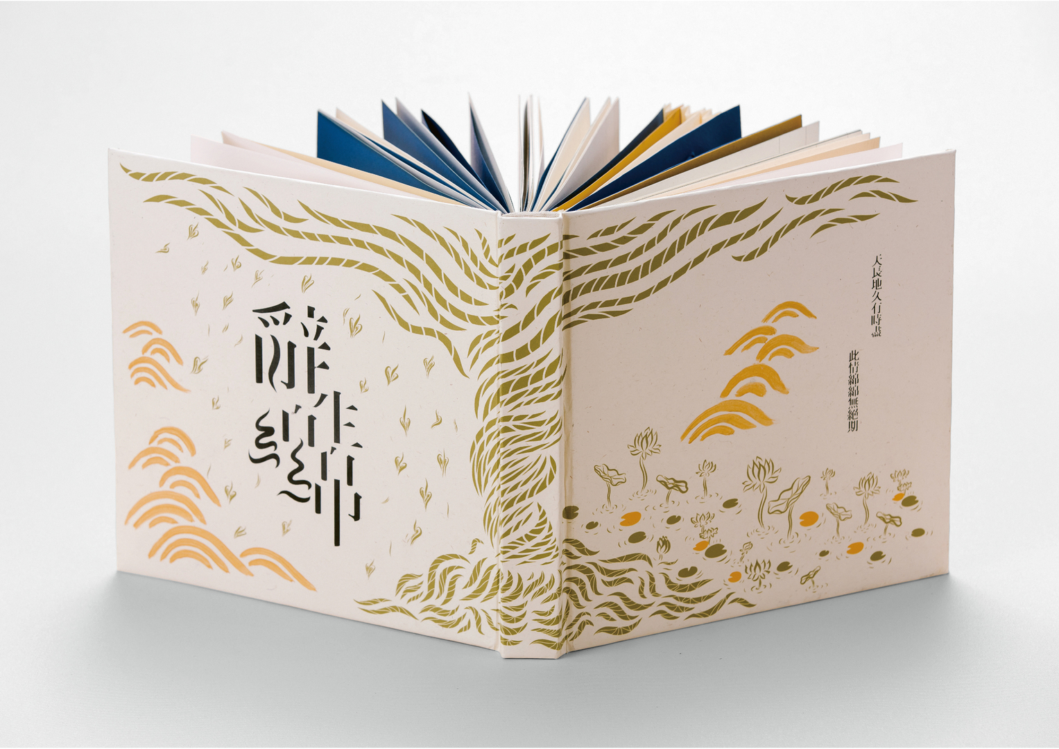 “Till the End of Life” deals with the topic of Taiwanese funeral culture, which reflects the fear and awe of death. In modern society, the knowledge about the procedure and the meaning of traditional burials is fading. This publication aims to curb this tendency. It features a large number of illustrations depicting funeral rites. In addition, the elaborate book, mainly designed in white, black, blue and yellow, showcases filigree pop-up elements. As the key element of the cover, there is a tree, the trunk of which adorns the spine of the book while its crown and roots spread out over its entire front and back.