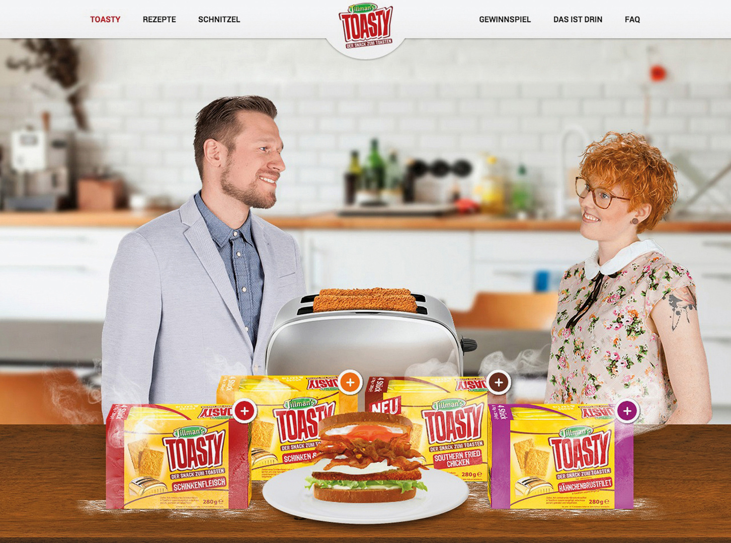 This microsite relaunch aims at a conceptual and visual reproduction of the brand characteristics of the Tillman’s Toasty snack, which are adaptability, simple preparation and high quality. Consequently, the new microsite creatively stages various playful explanations of how to prepare the snack, along with further information and infotainment elements. In order to enable customers to receive the information directly at the point of sale as well, the site has also been optimised for mobile devices.