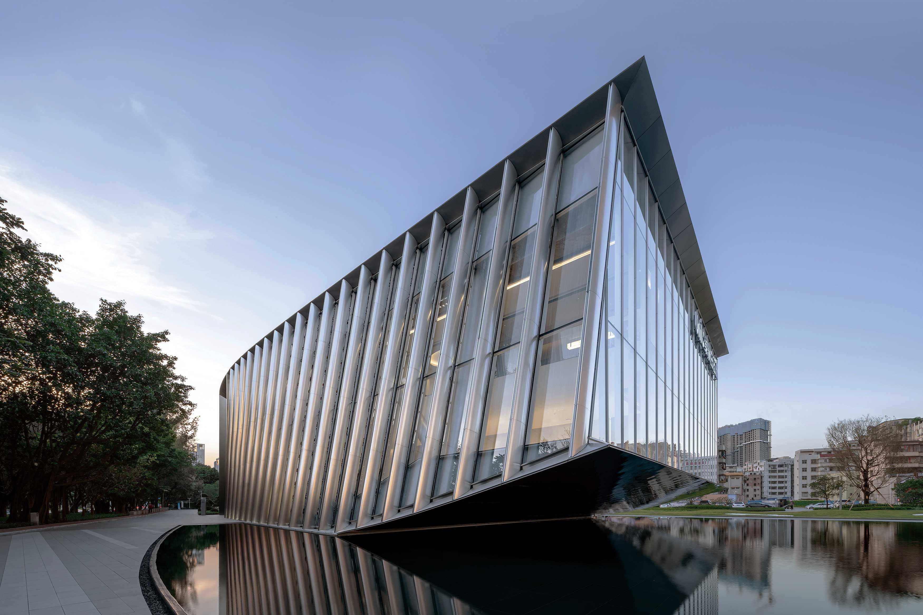 This exhibition hall on Shenzhen’s exhibition belt aims to integrate its architecture into the city with a “mirror wall” that reflects Baishizhou’s spatiotemporal evolution and urban renewal. A large cantilever on the east side evokes flight, while double stainless steel grilles on the south capture city scenes. Its overall architectural form points skyward, as though in dialogue with the infinite nature of time.