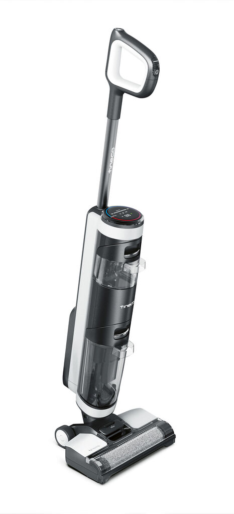 FLOOR ONE is a cordless wet-dry vacuum cleaner that recognises dirt thanks to smart sensors and then adjusts water flow and suction power accordingly. The comfort is increased by a long battery life and a minimised need for water changes. The compactly designed device cleanses its brush roller and hoses automatically by the push of a button. An LED screen, the connection to an app and audio instructions during use provide an uncomplicated operation of the appliance.