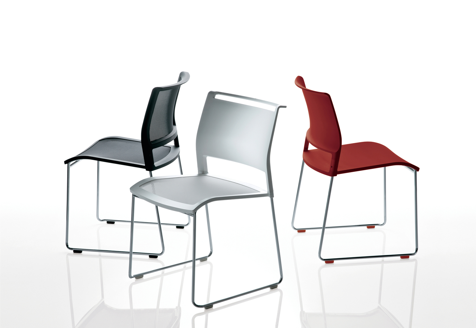 The Tipo is an aesthetic and functional multi-purpose stacking chair. It is available in three different backrests and two types of seats. The “mesh seat and back” option weighs as little as 3.5 kg and is thus easy to lift and reposition. This is complemented by a concise handle that is harmoniously integrated into the backrest. A high degree of seating comfort is fostered by the combination of a mesh-type seat displaying a good distribution of pressure and a torsion bar frame with a flexible polypropylene backrest. Thanks to the use of recycled materials, the chair also features an eco-friendly design, and all individual components are recyclable as well. Last but not least, the well-thought-out construction allows for a complete disassembly into all specific material types.