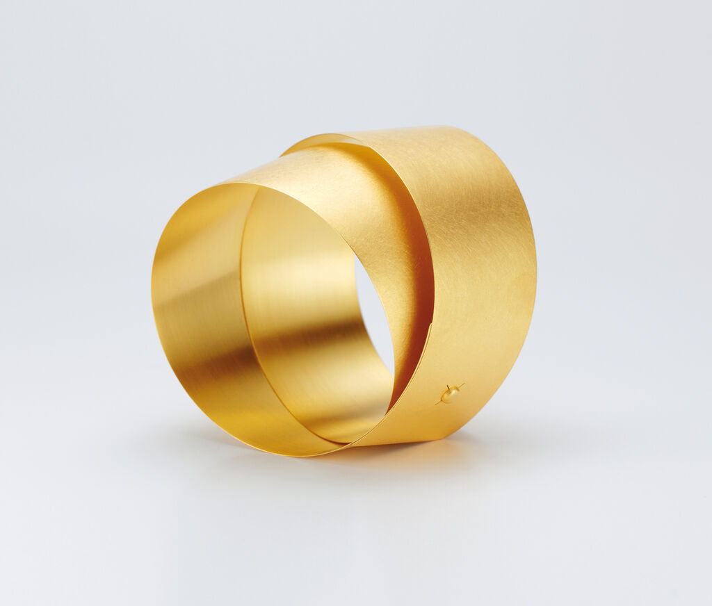 The Tira bangle made of 750 gold fascinates with its approach to exploring the possibilities of the material. In a virtuoso manner it rearranges the properties of gold into an object of the highest elegance and grace. Visual lightness merges with hardness and flexibility. The perfect craftsmanship and functionality of this bangle project an exquisite quality.