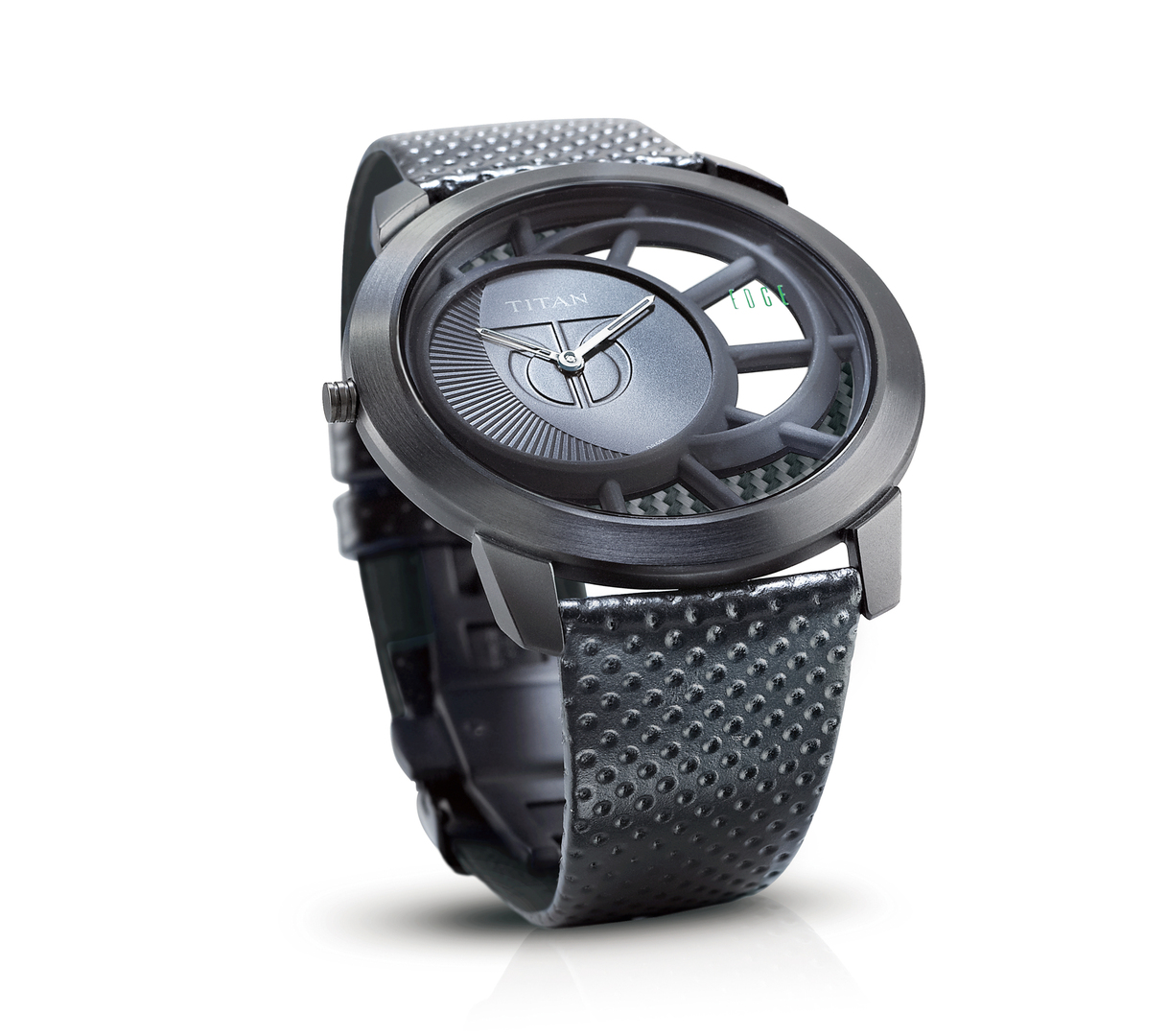 Titanium EDGE is characterised by minimalist aesthetics and high precision. This is one of the slimmest titanium watches in the world. It contains a jewelled quartz calibre of only 1.1 mm, has a casing thickness of just 4 mm and weighs a mere 36 grams. The calibre is suspended between two sapphire glass crystals and is held in place by a skeletal frame. The eclipsed design of the dial and the transparent glass floor enhance its delicate appearance. The watch hands are made of Duraluminium with a thickness of only 0.12 mm. Especially developed for left-handed users, the crown is positioned on the lefthand side.