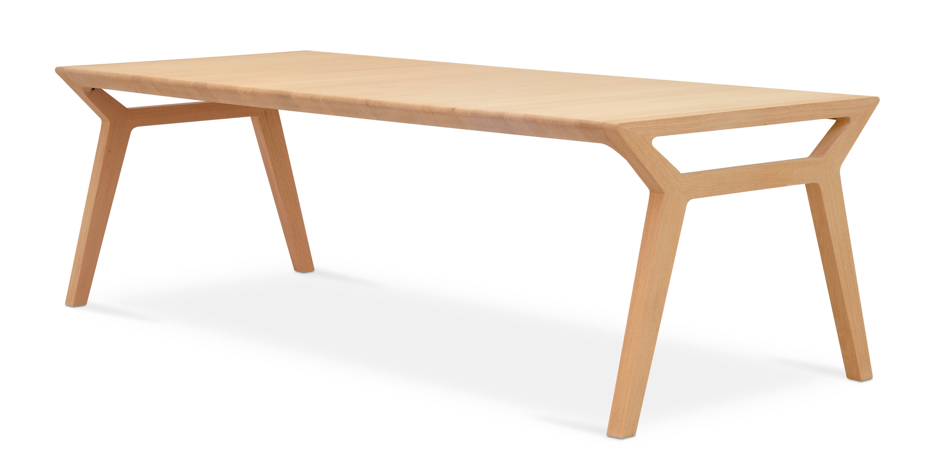 Tixe is an experiment in geometry which was influenced by bridge construction. The structure of the table makes it possible to extend it in all directions without losing its original form or compromising its stability. The result is an object which is both simple and robust and which fits into rustic surroundings just as well as into minimalist ones.