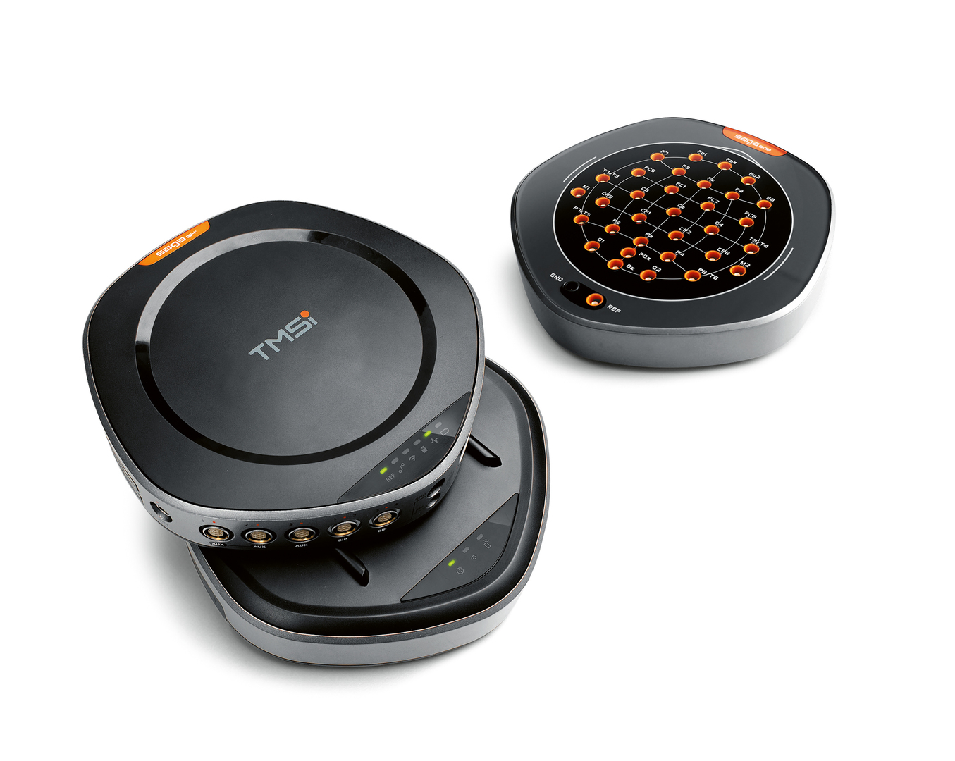 The TMSi Saga records the electrical activity of the brain (EEG) and the electrical activity of the muscles (HD EMG). It includes three separate devices, which form a physical and aesthetic unit: a portable recording device, a docking station for charging and data transfer and a breakout box if more input channels are needed. All components can be easily mounted on top of each other, yet their specific function is still clearly discernible. The uniform design language conveys the same futuristic but timeless impression.