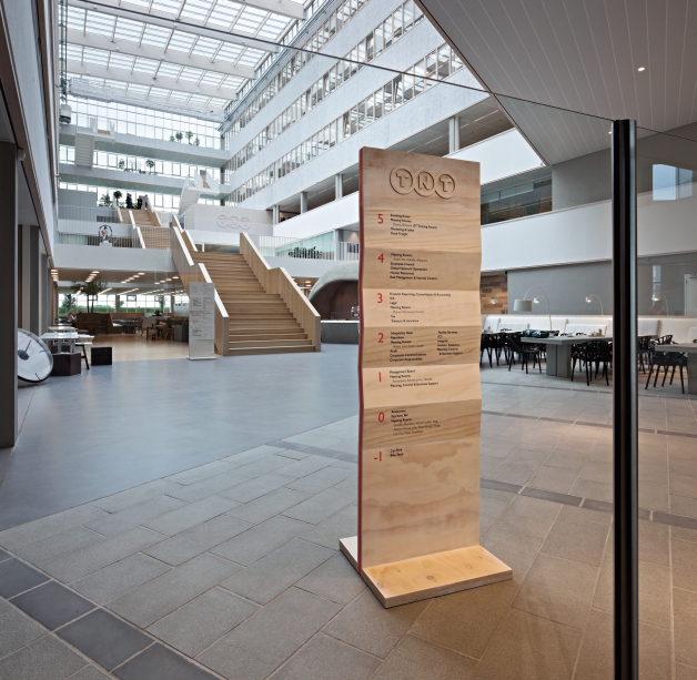 A particularly distinguishing feature of the TNT Green Office’s architecture is the innovative concept of sustainability that is orientated to natural cycles. This is reflected by a system of signs which is seamlessly integrated into the surrounding environment. It incorporates existing materials into interior space using – in a subtle yet unique style – elements like natural light, colouring and materials in their most simple form.