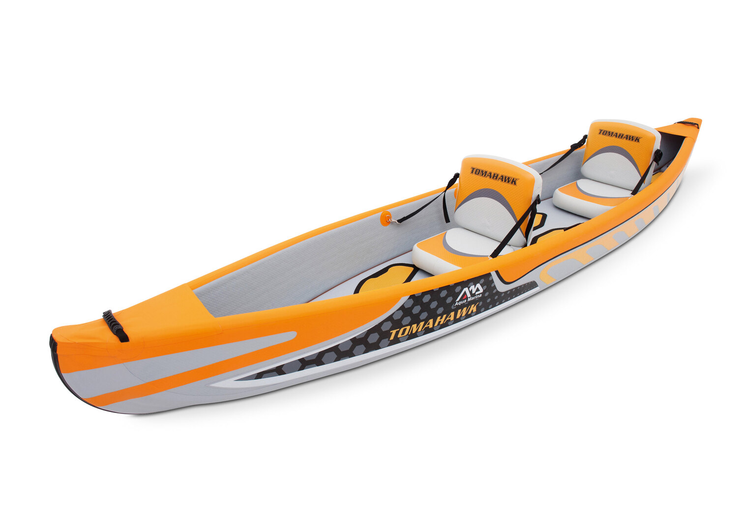 The inflatable kayak Tomahawk sets new standards in terms of rigidity, gliding properties, speed and shape. Engineered for the most challenging paddling environments in coastal regions or on big lakes, its design represents a hybrid of an inflatable kayak and classic canoe. It combines efficiency, stability, storage space and finesse. It is therefore suitable for outings with a light load, it is stable on the water and at the same time it is fast and manoeuvrable. The adjustable drop-stitch air seats, with high back support, provide hours of comfort.