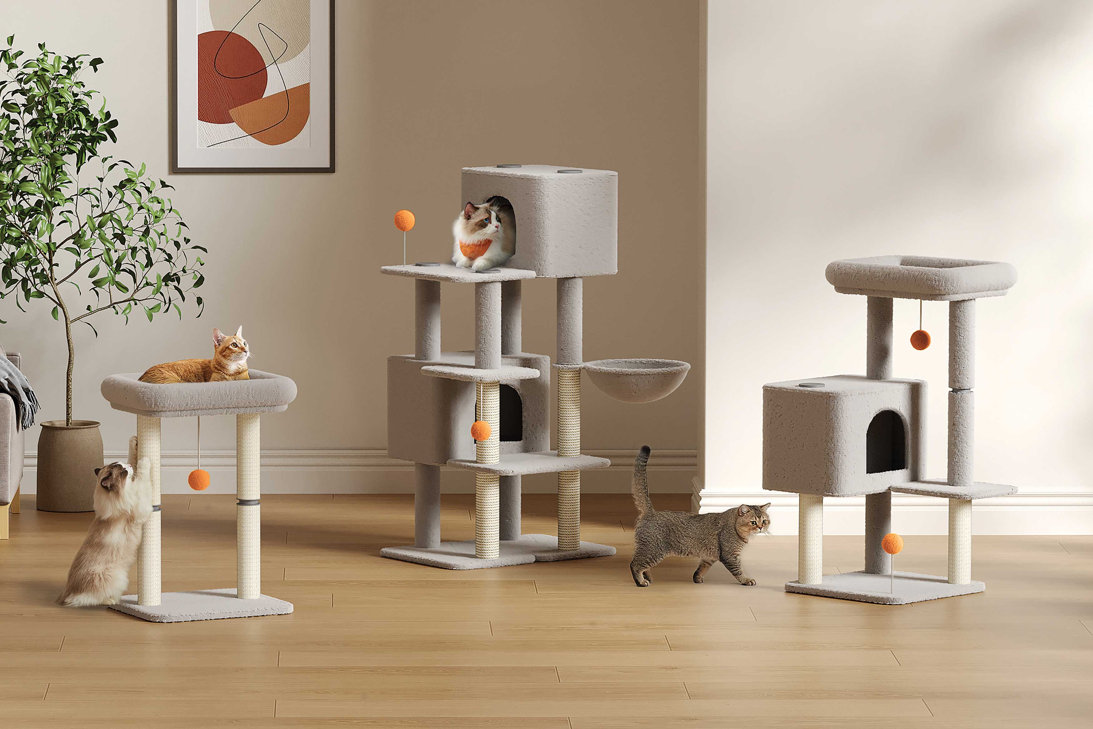 The Toolless Cuddly connector, a component for cat trees, makes assembly and disassembly very simple, significantly reducing the owner’s time spent on installation. The installation time for cat trees with the Toolless Cuddly connector is reduced by 90% compared to standard cat trees. The installation time for cat trees with the Toolless Cuddly connector is reduced by 90% compared to standard cat trees.The cat tree’s structure and footprint can be easily modified to meet the unique needs of cats.
