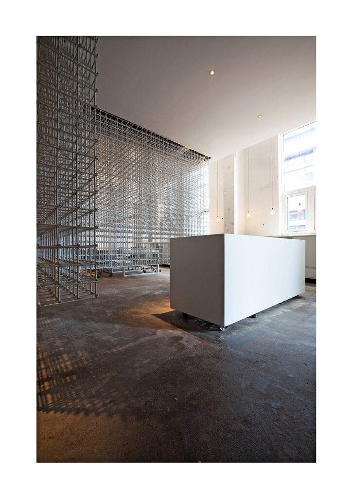 Located in an old plant area in the prosperous Central Business District of Beijing, Top Time Office is an office for movie and TV talents as well as creative people. The original walls and ceiling of the old plant were to be retained as much as possible. The concept utilised multiple high-quality coloured glass boxes for integrating steel plates and bars into an elaborate construction. Areas for meetings, work, make-up, fittings, discussions, reception and so on are partitioned and arranged in a tonality that is almost pure white. The specially designed working droplights and suspended ceiling lamps exude an especially ornate and dynamic appearance in this pure white world.