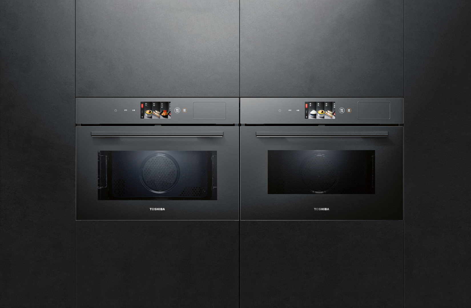The multifunction devices of the Toshiba Serie feature a steam cooking function and an integrated hot air fryer, as well as 12 different baking modes and an automatic roasting function. The TFT colour display with clear menu navigation ensures intuitive operation and simplifies workflows. The design of the door handle with its matt shiny surface is inspired by the shape of a Japanese roof eave and makes a sophisticated addition to the otherwise clear, reduced appearance.