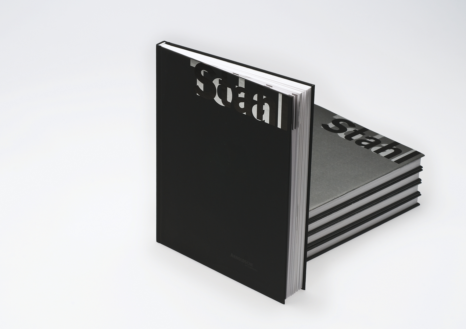 The “Total Stahl” (Total Steel) exhibition catalogue presents the results of a steel jewellery competition. The jewellery and tools of the four prize-winners and other people involved are shown, supplemented by the works of established artists. The catalogue thus creates a multifaceted picture of the applied-metal handicraft. The book’s design concept aims to do justice to the unique works of art on paper. In line with the subject, the cover is configured in grey, with a clear design continued inside the catalogue – highlighting both the hardness of the material and the poetic aspect of the handicraft. To achieve this, hot-foil stamping and elaborate typography, among other techniques, are employed.