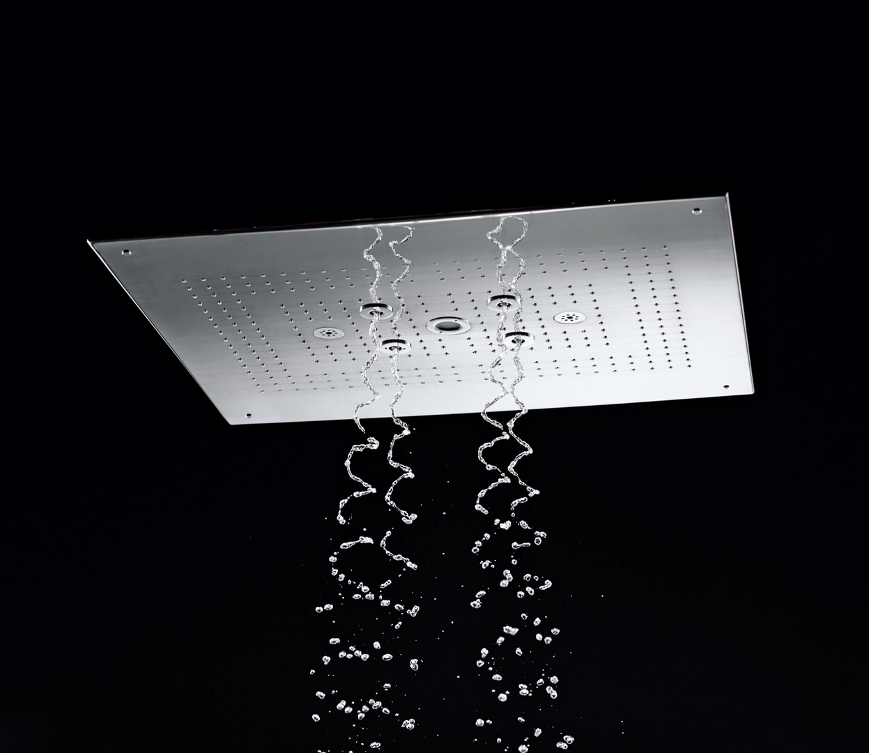 This overhead shower offers three different types of spray to ensure an exceptional shower experience. The “Water Pillar” mode allows water to flow from the centre of the unit at reduced speed and without mixing it with air. This creates a quiet, column-like stream of hot water. The “Aerial Pulse” mode produces larger water droplets mixed with air from the entire surface of the shower and pulsates, which makes the droplets seem even larger. The “Gyrostream” mode delivers spiral-shaped, massaging hot-water sprays that are emitted by nozzles that rotate in two directions.