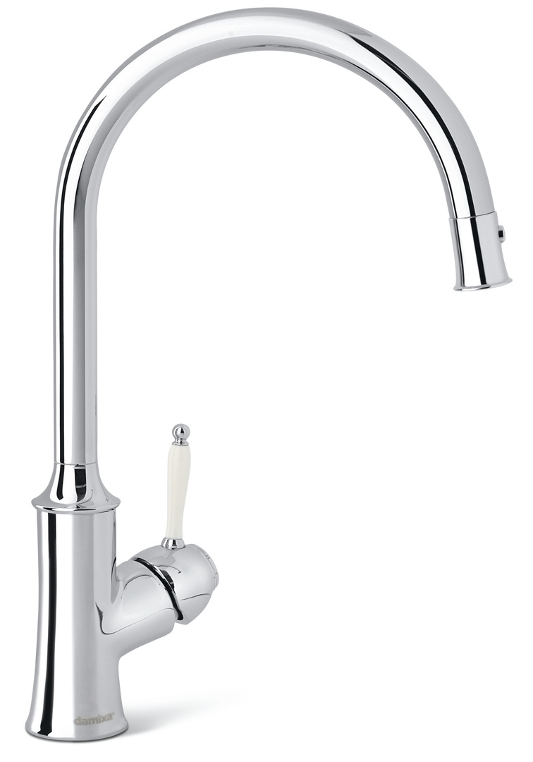 This kitchen tap combines the use of state-of-the-art technologies with a vintage-style form and thus sets a new trend.