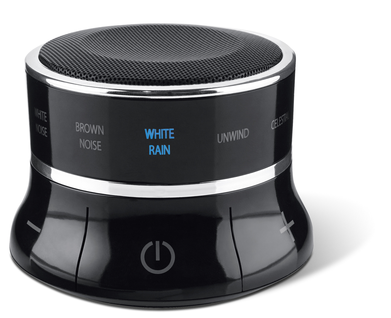 The Tranquil Moments Bedside Speaker is a Bluetooth device particularly suitable for use in the bedroom. It is capable of playing 12 different sounds that, based on scientific findings, help with relaxing and falling asleep. At first, the user selects a sound by simply turning the dial on top, then he presses the button to start the 30-minute sleep enhancement mode. Outside of the bedroom the device can be used like any conventional Bluetooth speaker.
