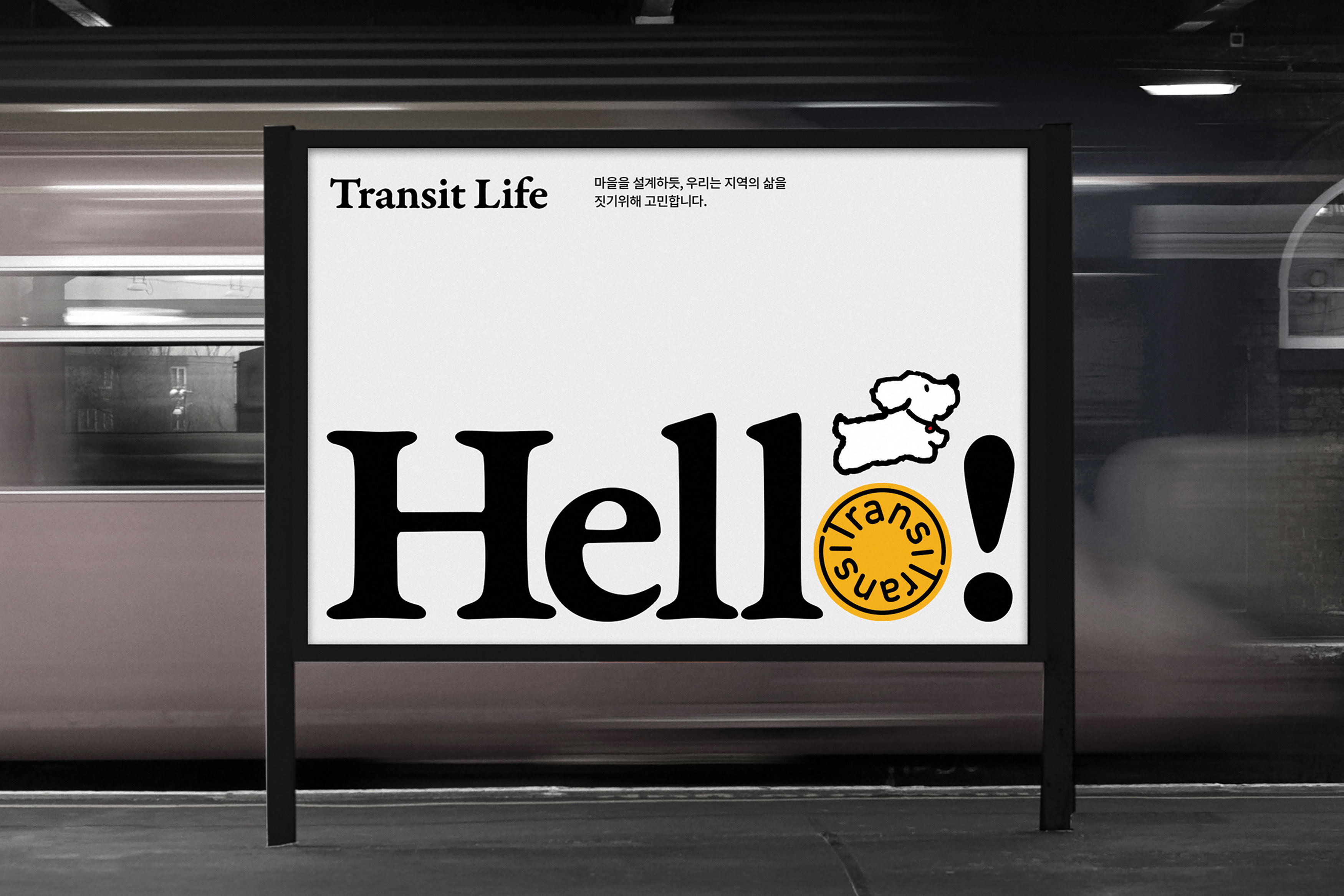 Transit Sangbong is a redevelopment project that transforms a former intercity bus terminal into a vibrant mixed-use complex. The goal is to turn the site from a transportation hub into a community-centred space, bringing renewed vitality by fostering connections among people and regions. The brand identity was developed around the central question: how can the project's core value, which is to connect people and places through community, be effectively communicated? The logotype is created based on the practical and universal DIN typeface, customised with rounded edges to create a friendly yet modern impression. This reflects the intention for the space to be one of interaction and connection. The two connected 'T's in the logo symbolise Transit Sangbong's role as a conduit between individuals and communities. The round frame around the logo references the site's past as a bus terminal, drawing visual cues from familiar traffic signs. This design honours the location's legacy while introducing a modern sensibility, balancing the old and new. Additionally, graphic elements that reinforce connectivity were applied to convey the site's lively atmosphere, conveying that Transit Sangbong is more than just a physical place — it is a hub for interaction, exchange, and community building. Red Dot Award: Design Concept | Concept | Brand Design and Identity