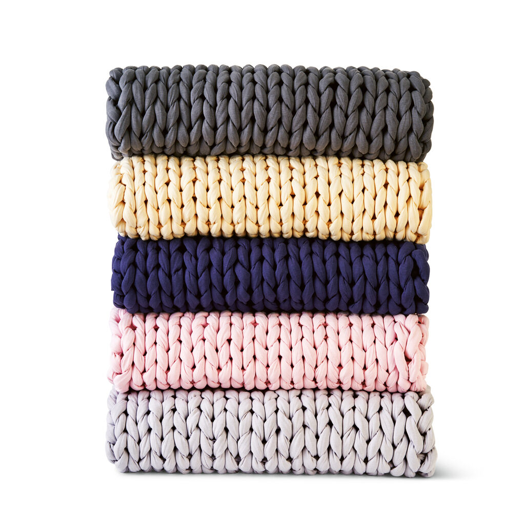 The Tree Napper weighted blanket promotes restful sleep. The soft, cosy appearance of the knit design is an eye-catching feature.