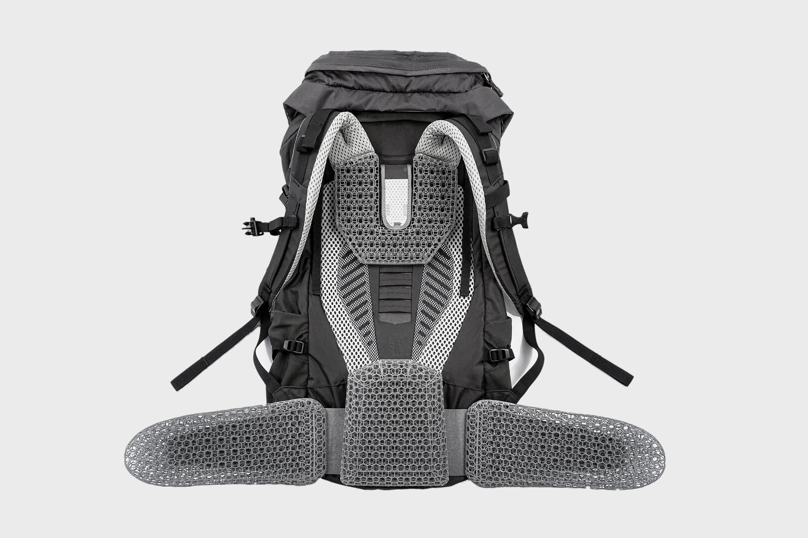 What would a perfect hiking backpack system look like if it were to reduce the unpleasant sensations of warmth and friction? The team set out to redesign conventional backpack padding and put the first 3D-printed padding to the test. A fully integrated cushioning experience unlocks superior comfort thanks to freely designable lattice structures made possible only by Additive Manufacturing. The open cell structure of the 3D-printed paddings greatly improves air ventilation, reduces heat accumulation, and thus significantly reduces temperature and relative humidity at the contact area with the back. The special Ultrasint® TPU01 material is a multi-purpose TPU that provides strong, flexible and ultra-durable part performance while maintaining excellent surface quality. In addition, the material is very easy to print, with high process stability and one of the highest throughputs for flexible material in the 3D-printing market. Thanks to the design flexibility enabled by 3D-printing, the back pads and hip fins can be produced in a single piece out of one material. This significantly reduces assembly steps, time and cost. The printed part no longer requires gluing or sewing. Moreover, unprocessed powder gets fully reused in subsequent print jobs and printed parts are 100% recyclable at the end of their lifecycles. Customised solutions are also available for printing backpack elements, including a full range of services from development to global production. In addition to comfort and performance, the backpack offers limitless design flexibility, simple and quick assembly, TPU that is fully recyclable and printed backpack elements that are completely sustainable.