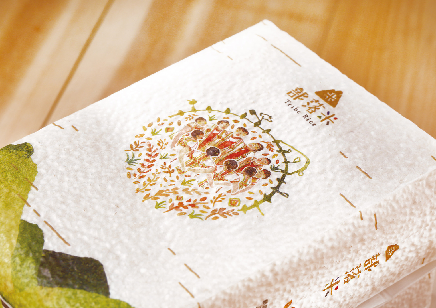The brand aims to create employment opportunities for indigenous people, to help disadvantaged children with after-school counselling services and to offer a natural rice product without chemical additives as a safe and healthy food on the market. With its design, the packaging provides important information about the product and its production. The simple, stylised illustrations show scenes of aboriginal chanting, mountain landscapes and fields. The dominant colour is a warm gold. It symbolises the original land in which the high-quality cereal grows.
