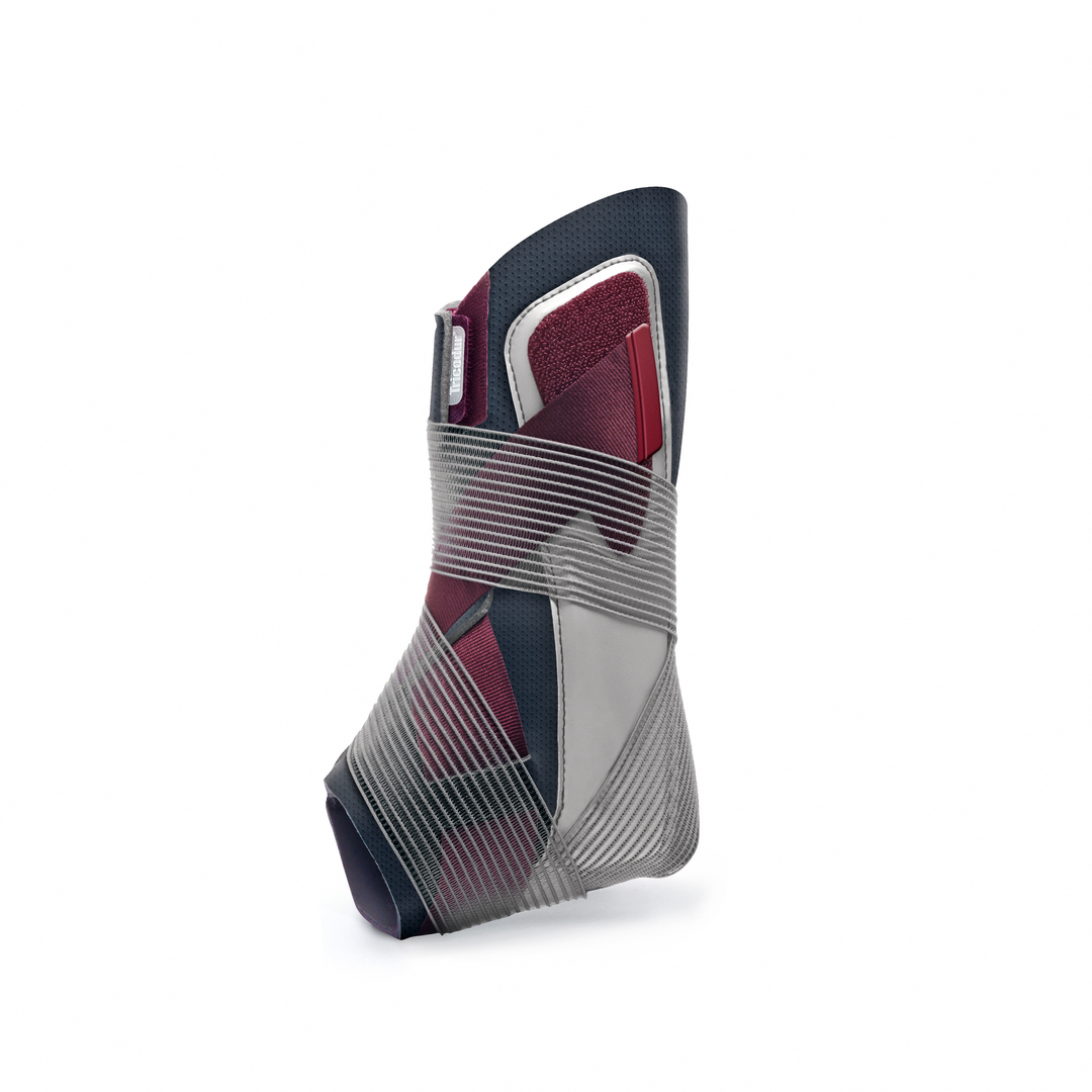 This ankle brace has an attractive and particularly slim form. A remarkable feature is the use of tightly fitting bands, which are inspired by taping techniques and guarantee an optimal fixation of the heel.