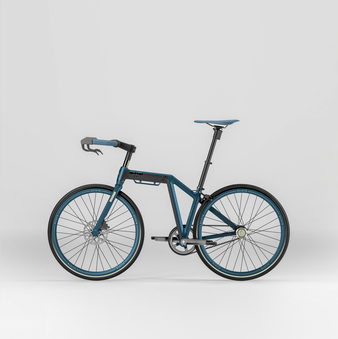 Intended to be more than a last-mile solution (for short to medium distance commuting), TRIG is designed for improved riding experience while retaining the convenience of a traditional folding bike. Instead of using wheels with small diameters, 650C road wheels provide stability while giving a smoother ride over imperfect road surfaces. Coupled with a frame geometry with an agile response, TRIG facilitates easier manoeuvre in city traffic. Without compromising on the ride quality, riders waste less effort manhandling the bike and spend more time enjoying their ride. Critical to the bike design is its folding mechanism located within the top tube of the bike. The bike can be folded through two separate axes in a single motion. A trigger simultaneously releases the bolts and latches that secure both joints to provide greater ease of use. The folding motion draws the rear wheel forward into alignment with the front wheel, allowing the folded bike to be rolled along, even on rough surfaces and flights of stairs. The folding also gives a narrower profile, allowing the bike to be stored easily so users can keep the bike close-by at all times and enjoy their commutes without worrying about parking and storage solutions. For greater usability, TRIG includes an integrated front and rear lights to keep the rider visible to other road users, while using a belt drive reduces the maintenance required. The frameset is designed to be compatible with standard components where possible, allowing greater user customisation and serviceability. Red Dot Award: Design Concept | Concept | Mobility