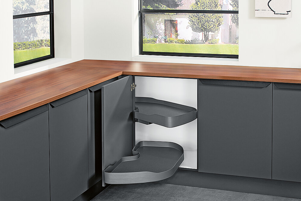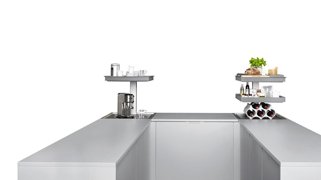 The ingenious TRIGON cabinet system creates space in the kitchen. “It offers additional storage space and new usage possibilities in the kitchen architecture,” said the jury. “The use of TRIGON as a semi-circular, double or end corner solution allows very flexible, contemporary layout options.” TRIGON offers over 40 per cent more storage space than a standard corner unit. The turn-and-slide pull-out elements are organically shaped and height-adjustable without tools. The finely nubbed base guarantees a secure stand and a high degree of stability.