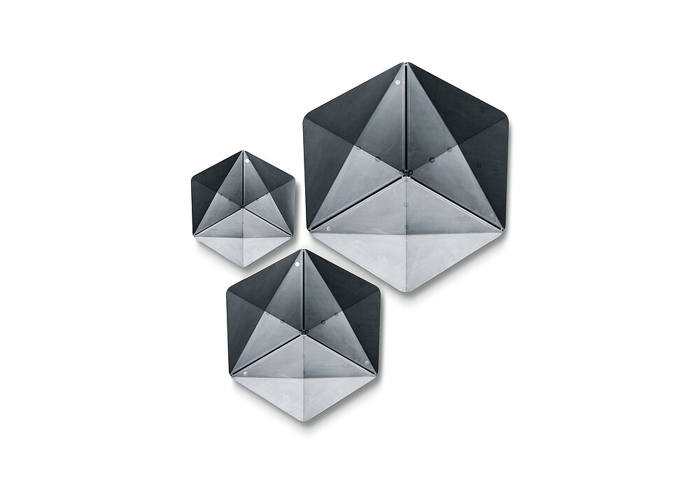 This fire bowl made of weather-resistant corten steel is easily separable and thus allows for easy transport. Three identical faceted segments can be assembled in a few simple steps into a solid fire bowl. The adaptable cooking grate is rotatable and can be adjusted continuously in height. The outer shelf offers space for drinks, food or grillables, but can also be swivelled inwards. The fire bowl is available in three different sizes.