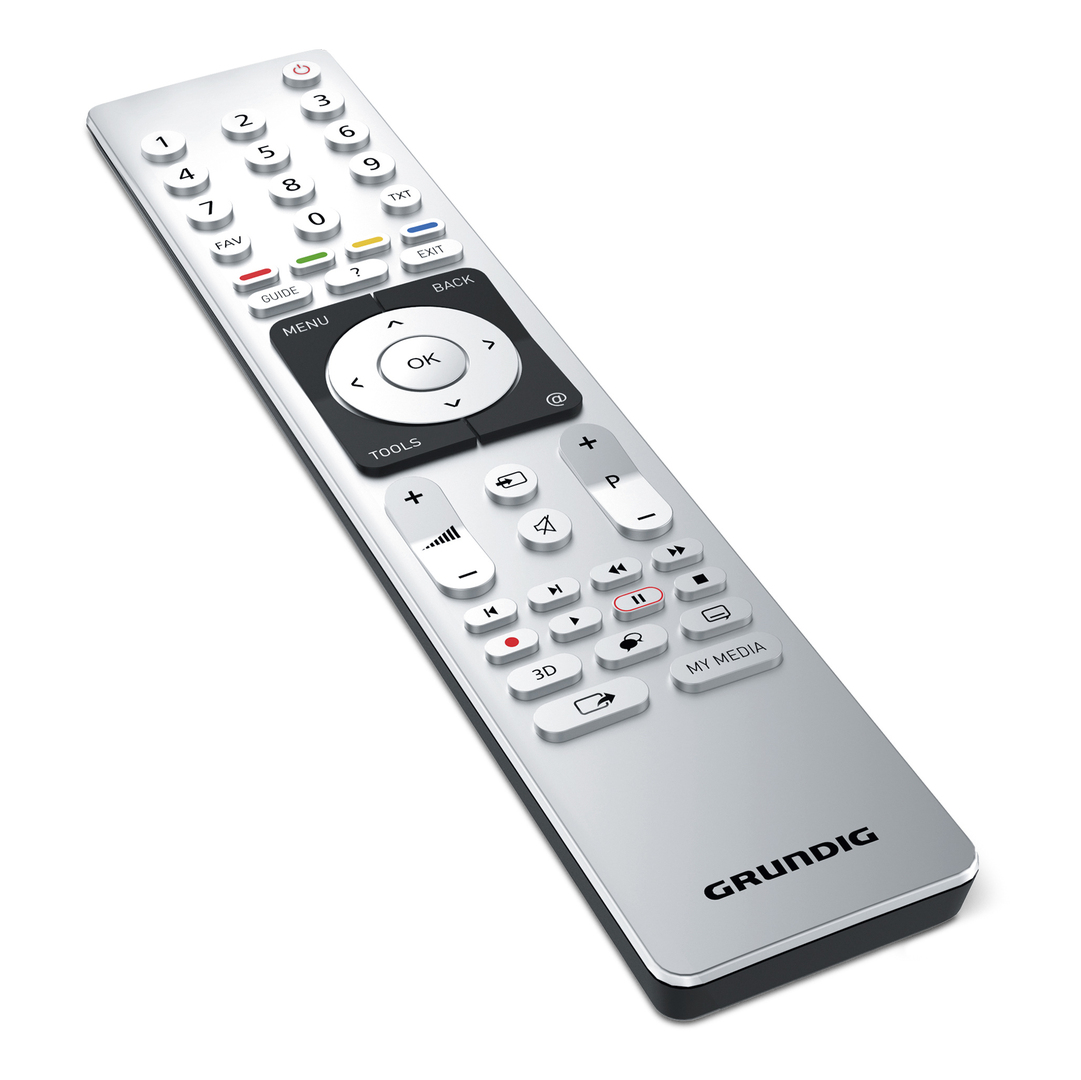 With its reduced design, this remote control displays a clear and elegant appearance. The balanced key size allows for comfortable handling. The central key element has a surface with different textures, making it easy to find menu functions. The upper shell of the remote control is colour-coded, while the lower shell is smoothly shaped and rounded, providing a comfortable grip. Length, centre of mass and weight are perfectly balanced.