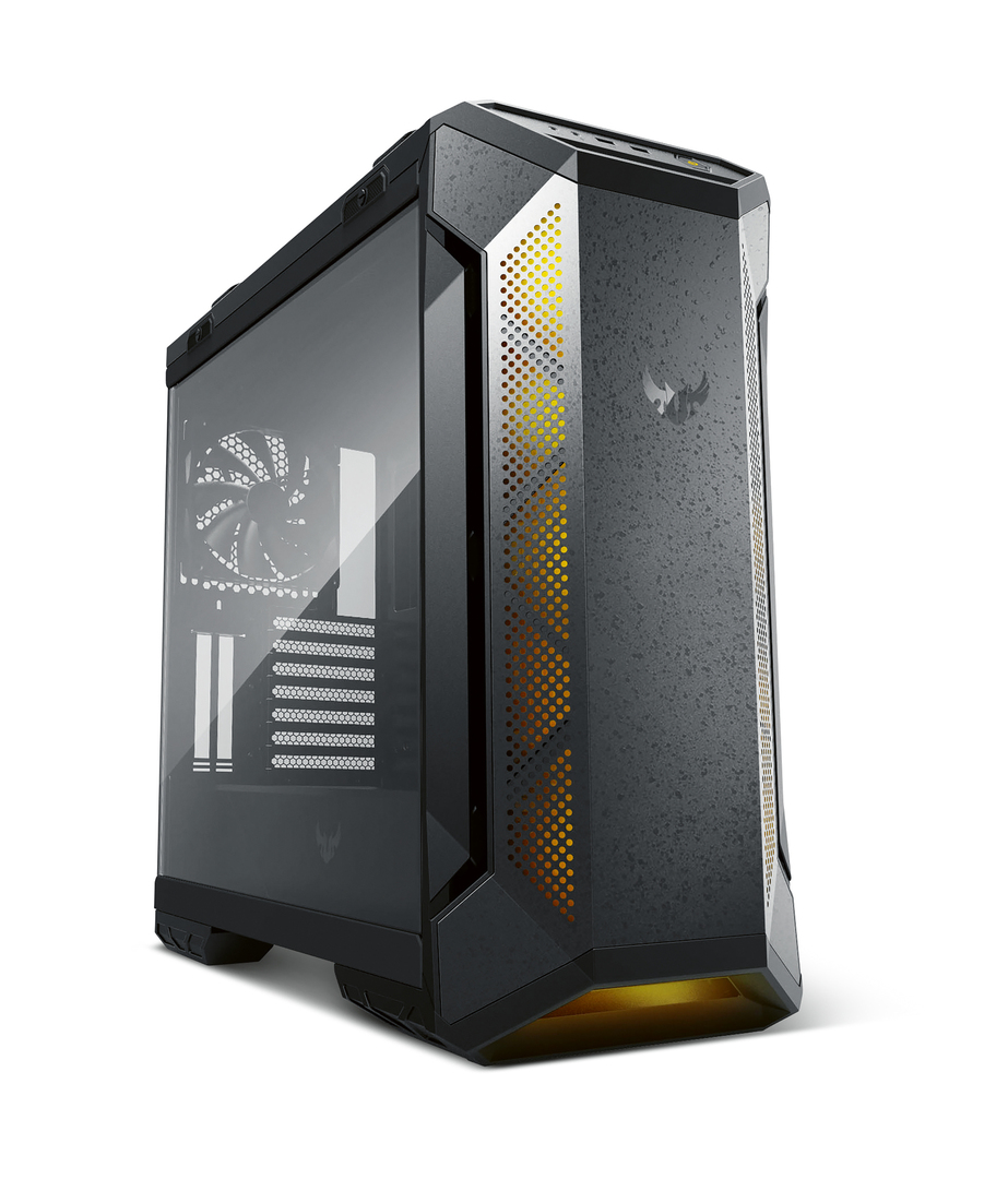 This gaming computer chassis combines advanced cooling functionality with stability to meet the demands of sophisticated gamers. Three fans with RGB illumination at the front and a 140 mm fan at the rear provide optimum cooling. The RGB fans can be operated with the accompanying controller. The chassis front consists of a sturdy metal construction with speckle pattern, while the tempered glass side panel allows for a view of the interior to showcase the illuminated components.