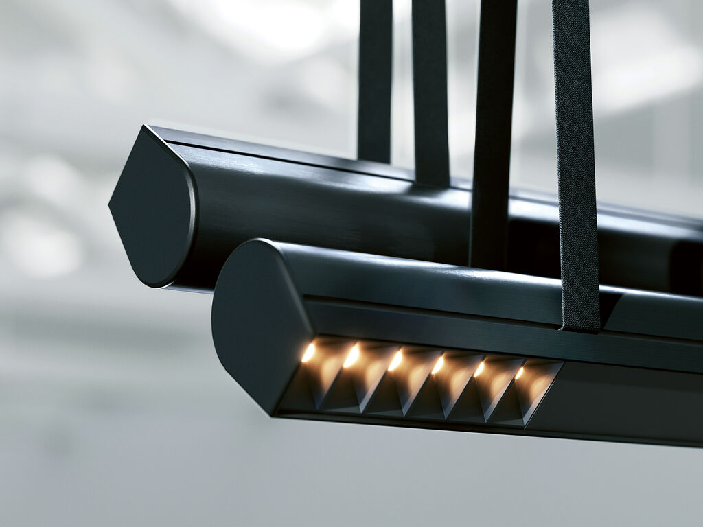 The TULIP hanging lamp blends functional precision with stylistic variety. Available in four different styles – Coastal, Industrial, Natural and Black Anodised – it suits a wide range of living environments and architectural spaces. The flexible suspension allows for mounting horizontally, at an angle or in other creative configurations, while the gentle curvature of the semi-circular body ensures the natural alignment of the straps, eliminating creases. The aluminium housing and protective coating offer corrosion protection and durability.