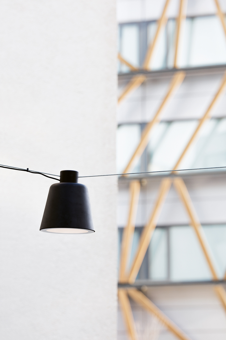 With its both minimalist yet elegant appearance, the Tumbler shaded street light deliberately creates a counterbalance to the loud chaos that can be found in urban street life. It comes equipped with contemporary technology, yet its conical shape and rounded edges recall the form of lampshades found in private homes. The modular street light provides high-quality illumination and easily meets a range of different requirements in public and also private spaces.