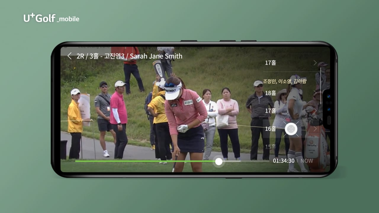 The U+ 5G Golf app is a golf streaming service for mobile devices that presents a wide range of information on popular golf players and tournaments in Korea. It features a flexible screen composition and a range of layouts to choose from, while a specific interface delivers a consistent user experience across all devices. A clear overview makes the 5G-based functions easy to understand and intuitively accessible. The app provides video footage from 60 cameras set around the golf course that captured all swings from various angles, and users are able to rotate these golfer swing scenes freely.