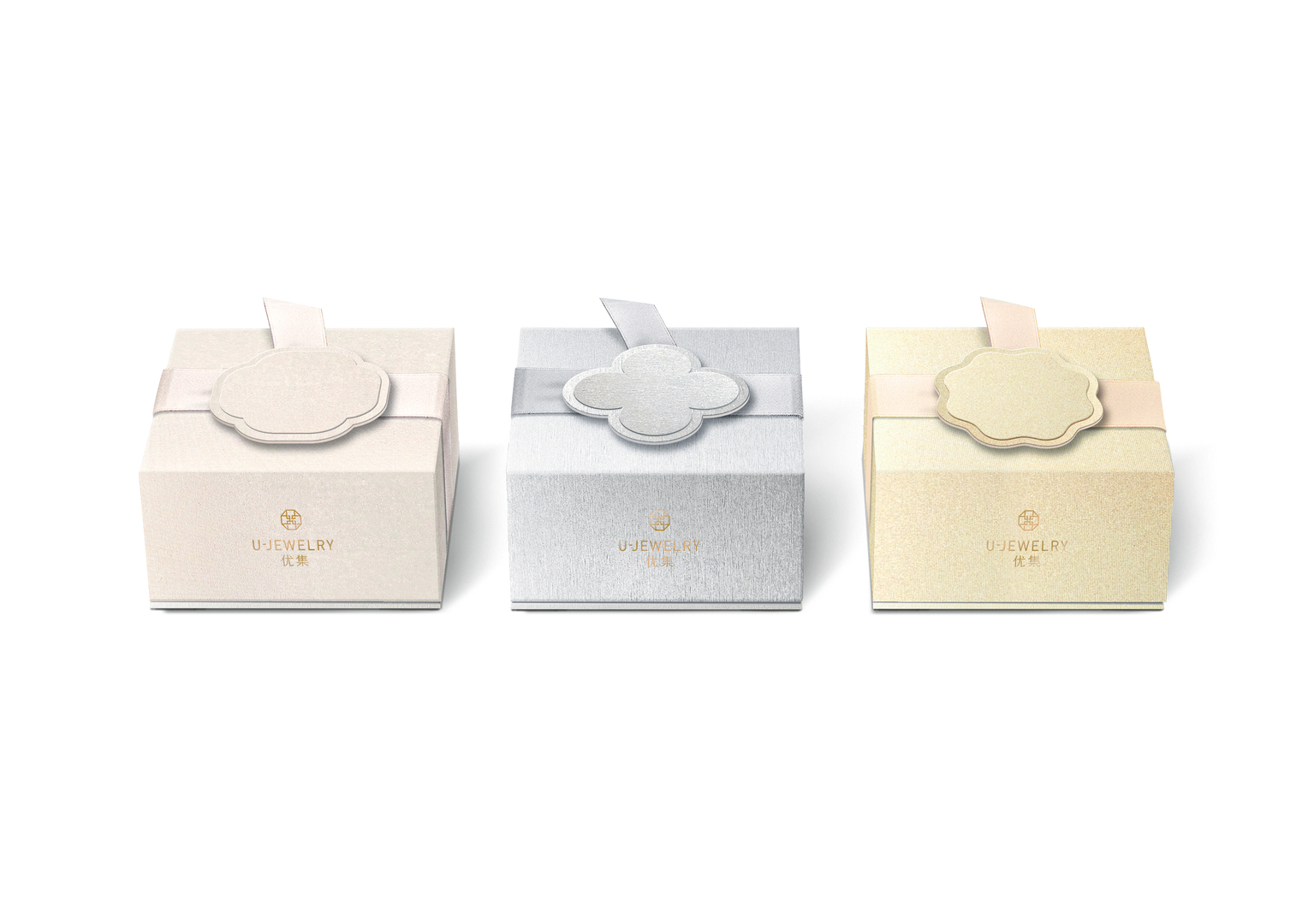 The philosophy of U-Jewelry is to combine an oriental appeal with Chinese stories. The goal was to make the whole package softer and more subtle, thus leading to further exploration. The design aims to express the beauty of the integrated nature. This is achieved by means of an artistic conception in the sense of a blooming garden or a pool of spring water, ideas that convey an oriental appeal. In the packaging structure, one end of the ribbon is fixed to the top of the lid, which can be a ceremonious highlight, while also creating a more elegant and leisured appearance.