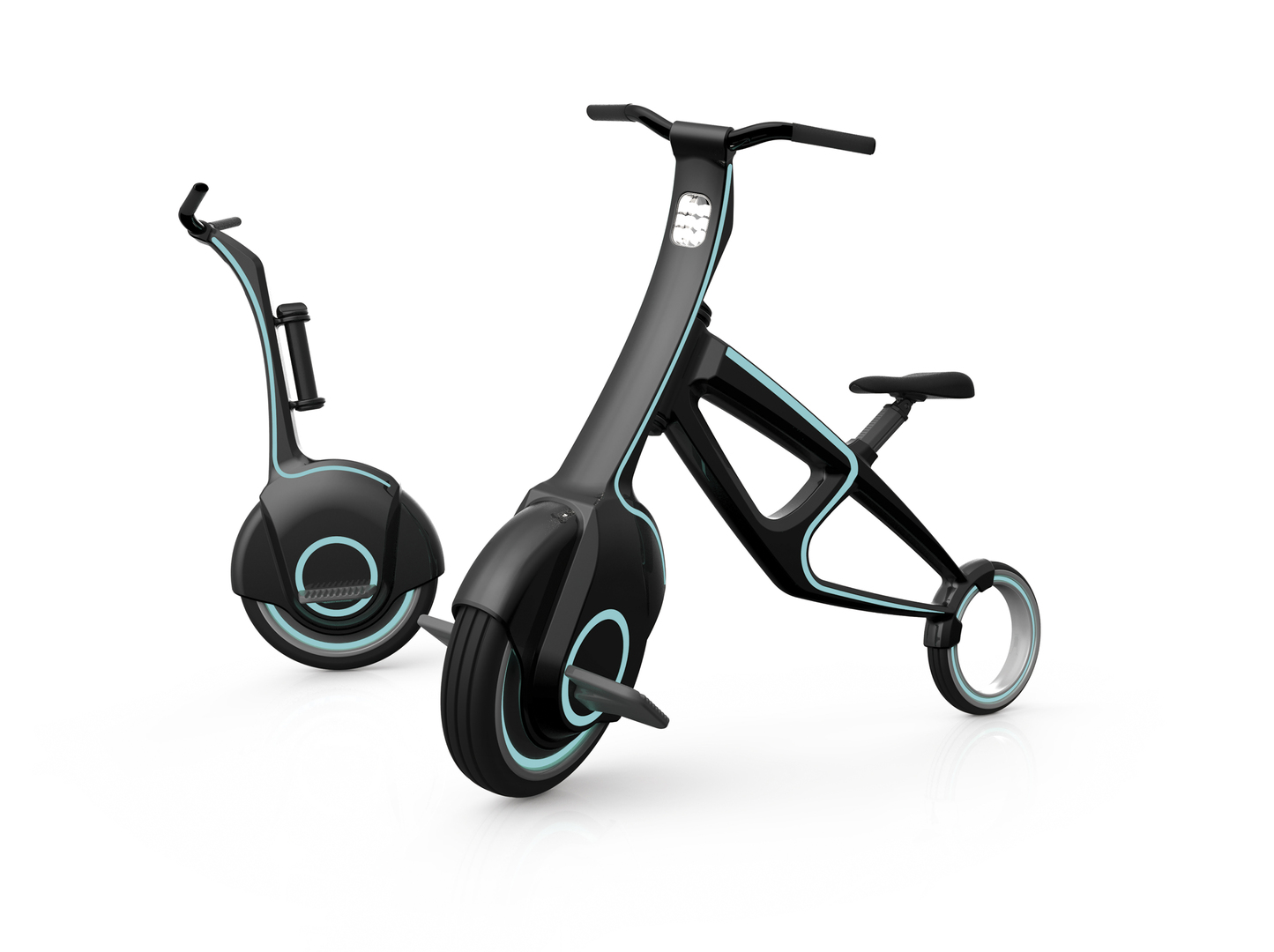 Ubike, which is short for Uni-bicycle, combines a unicycle and a bicycle to offer a different transport solution and an alternative method for travelling “the last mile”. Its scooter function works like a simple and practical electric bicycle and can be converted into a self-balancing unicycle for office commute.