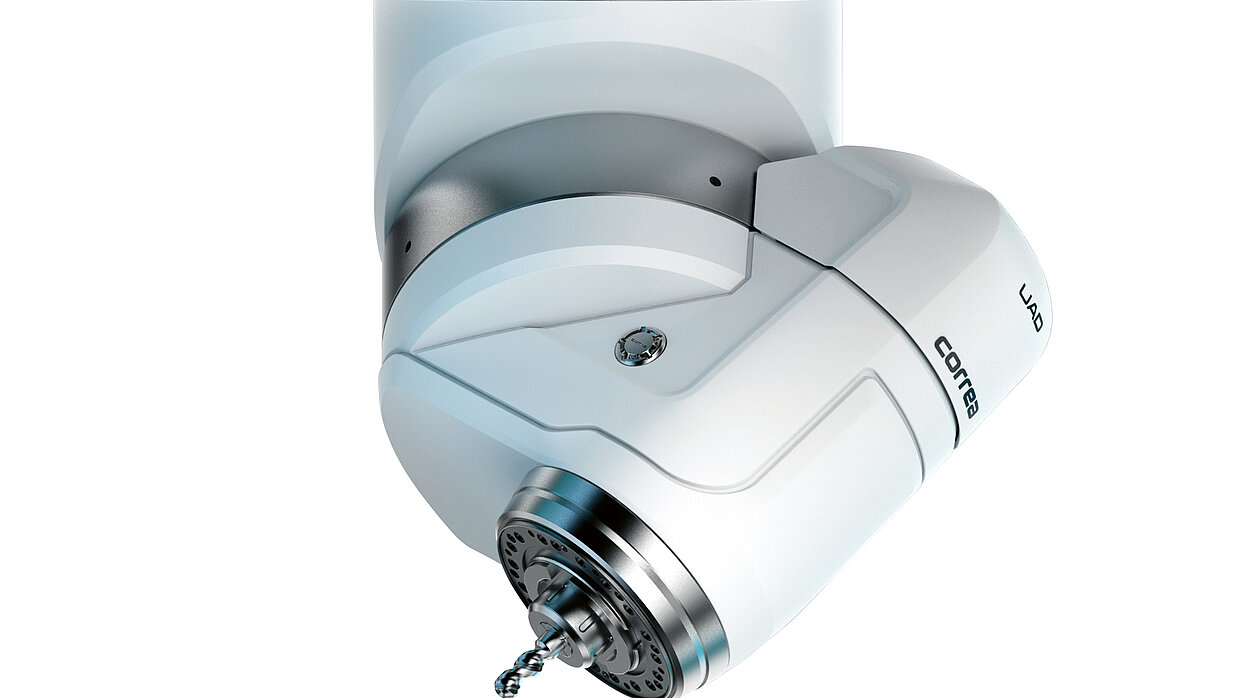 The UCE milling head was developed to improve efficiency and adaptability in the machining and finishing of various metallic surfaces. It achieves high milling speeds and, thanks to its intelligent design, is extremely flexible and agile. Its appearance projects high-quality workmanship. It conveys avant-garde sophistication and evokes associations with a laboratory rather than a workbench.