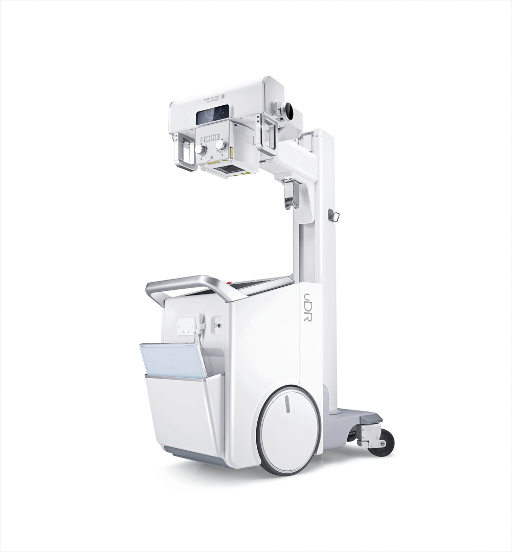 The objective pursued in designing the uDR 370i was to create an X-ray unit for use in developing countries. The system is only 58 cm wide and therefore able to fit through narrow corridors. The batteries for the trolley and the X-ray unit are separate, which enables uninterrupted use for 21 days. The 19" LCD touchscreen presents all data clearly. With the help of a tablet PC, operators can do imaging remotely, which thus optimally protects them from radiation damage.