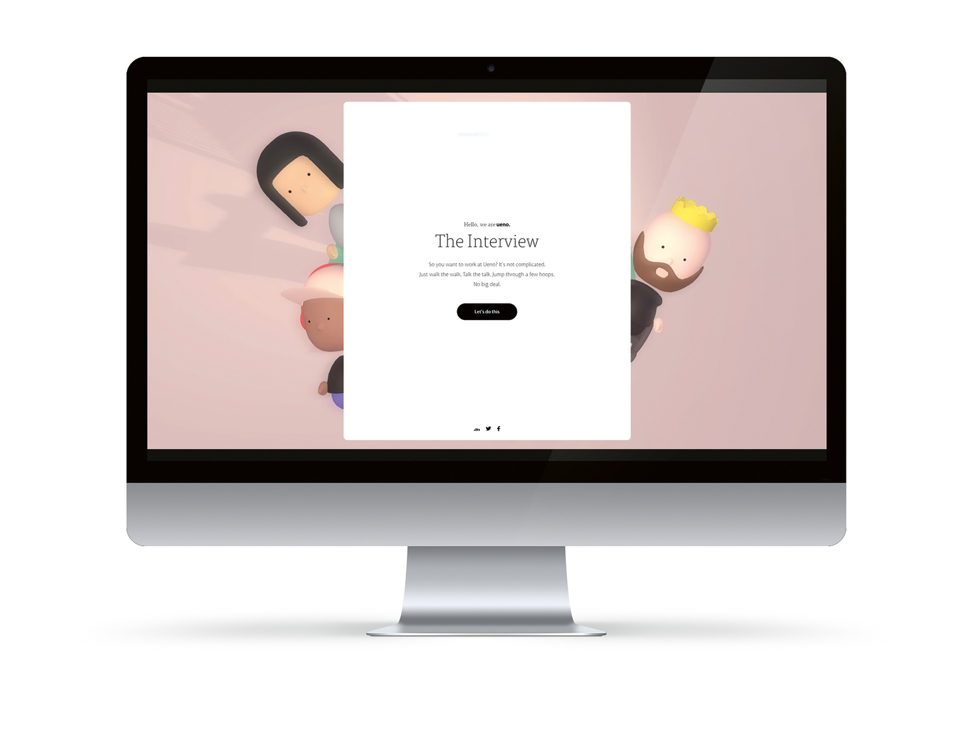 To give applicants a feel for their unconventional corporate culture, creative agency Ueno developed an interactive job interview in the form of a 3D game on their careers website. The job seeker slips into the role of a hot dog, Ueno’s unofficial mascot, who enters the agency office and is engaged by various employees in funny little dialogues. Random animations of the characters, which are triggered during the experience when the player is not moving, underline the game-like character of the website.
