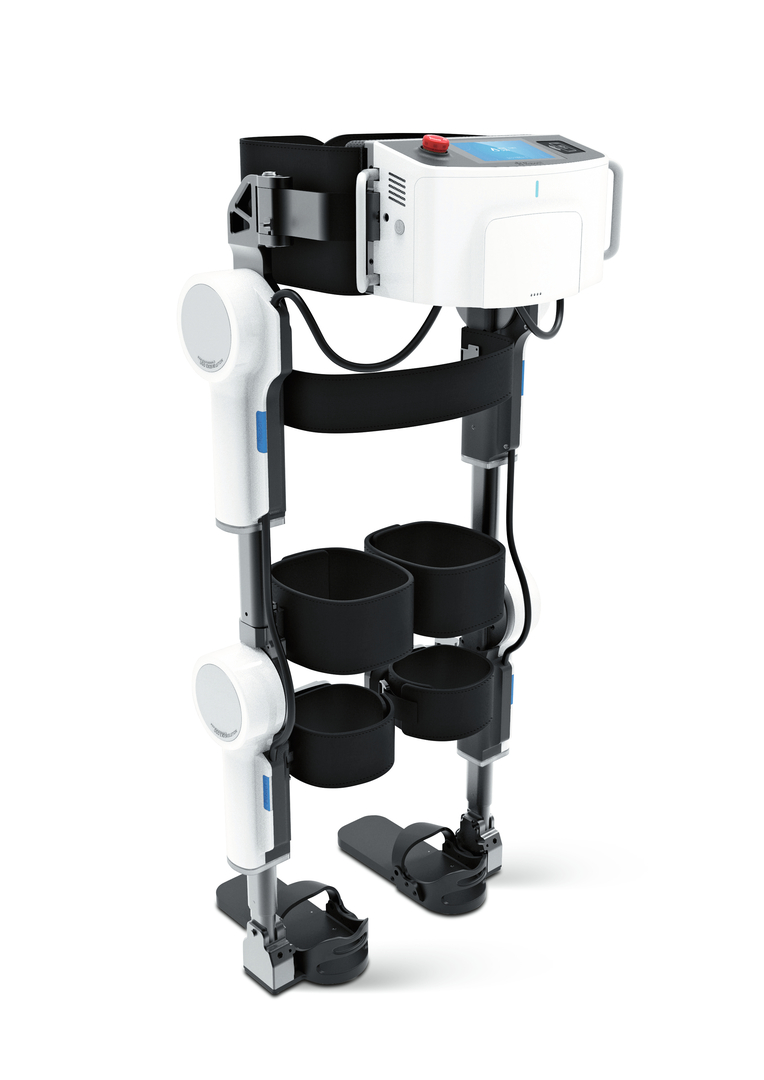 This rehabilitation robot teaches patients with motor dysfunction in their lower extremities how to walk normally again. It recognises the patient’s movement intentions via sensors and, with the help of motors on the joints, provides the necessary support for moving properly. The exoskeleton can be individually adapted and, due to the reduced weight of the control unit, is lighter than the predecessor model.