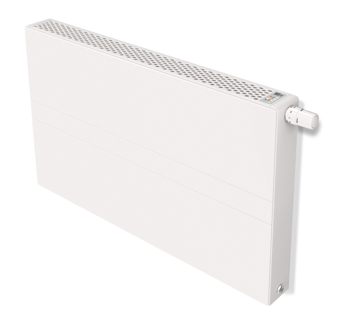 This radiator with E2 technology uses a unique concept to put into practice efficient, low-temperature heat emission. What is special is the use of ventilators to enhance natural convection in conjunction with an intelligent control system that switches between static or dynamic operation, either fully automatically or according to the user’s requirements. All functions can be managed using the clear touchpad control panel.