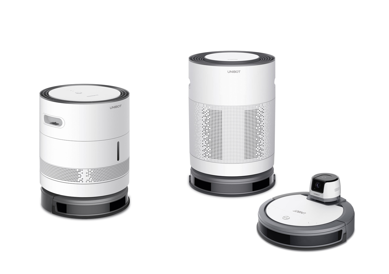 The Unibot is a modular home robot featuring four functions: floor cleaning, smart housekeeping, air humidification and air purification. It is possible to implement the modules either independently or in combination with the others, allowing several tasks to be carried out simultaneously. The user can control the robot remotely with the help of a smartphone app and thus retains full control at all times.