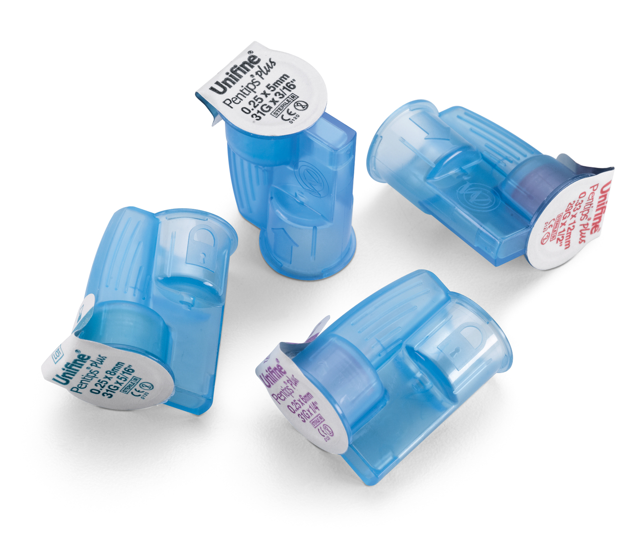 The Unifine Pentips Plus pen needle features an integrated container in which a used needle can be disposed of after injection. This provides a more convenient option for the immediate disposal of needles after injection and reduces the incidence of needle reuse. The extra-large surfaces provide sufficient grip, even for users with restricted dexterity, when attaching or removing needles from the injector pen.