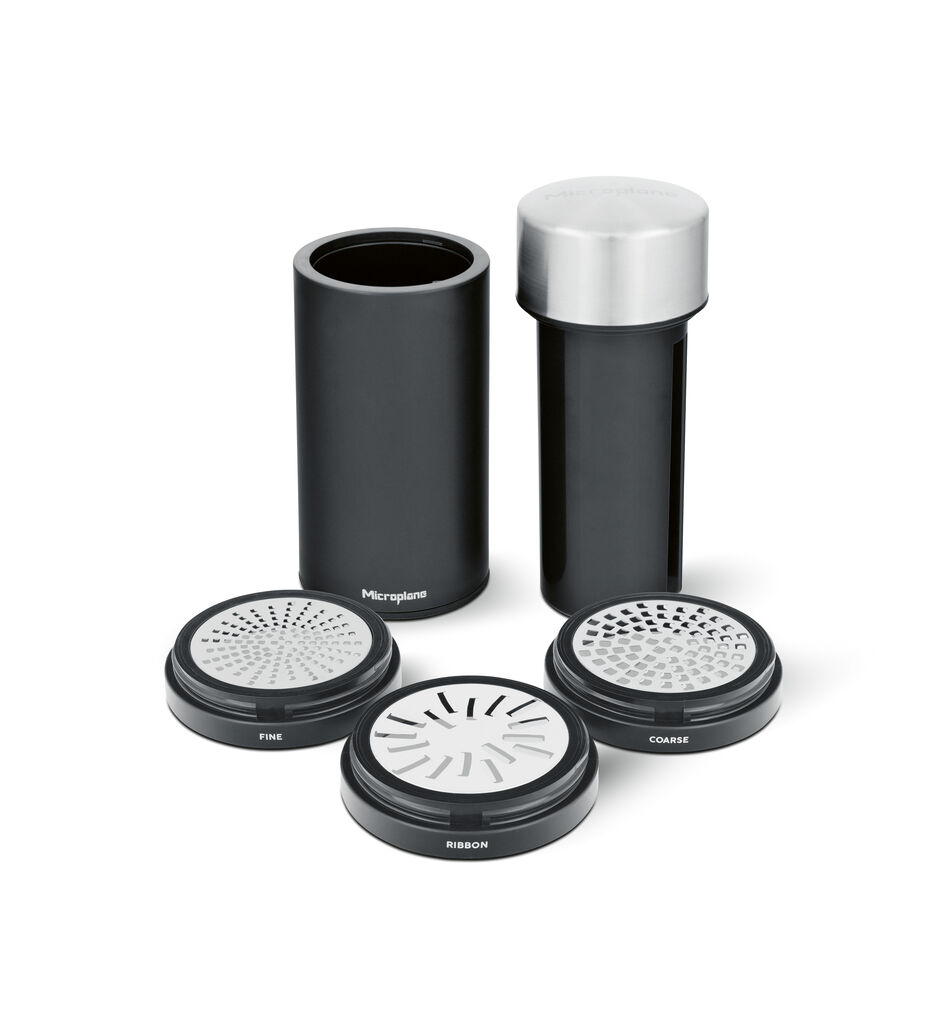 The compact and elegant Universal Mill allows you to quickly grate cheese, chocolate or nuts while preparing meals or directly at the table. Simply select from three photo-etched, stainless-steel blades (fine, coarse and ribbon). Insert ingredient in the body, push down and twist top to easily grate the desired food.  It also includes a compartment on the top to store whole spices. "The mill is a kitchen accessory that is limited to its essential function, which is why it is so easy to use. The clean lines and high-quality materials are also pleasing", the judges concluded.