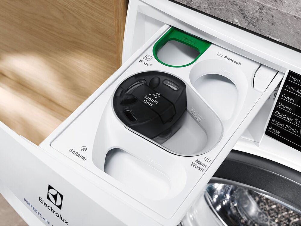 The well-conceived construction of this washing machine drawer is an excellent example of the role design can play in improving appliance efficiency. Users furthermore receive good visual operational guidance.