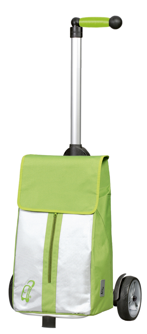 This shopping trolley is convincing by the harmonious fusion of a cool aluminium look, robust functionality and mature ergonomics. An oval aluminium tube, in combination with low-profile ball bearing wheels, provides an overall picture that enhances the high practical value of the trolley. A variety of bags with different patterns are available. The heavy-duty frame features easy to operate adjustment mechanisms, which include a three-position-system handle and additionally offer the possibility to adjust the height. The handle, designed in compliance with ergonomic aspects, allows users to individually adjust it to the most comfortable angle. The base of the trolley is unfolded by means of a simple, innovative and functional spring mechanism. Two low-profile ball bearing wheels guarantee effortless and low-noise ease of use.