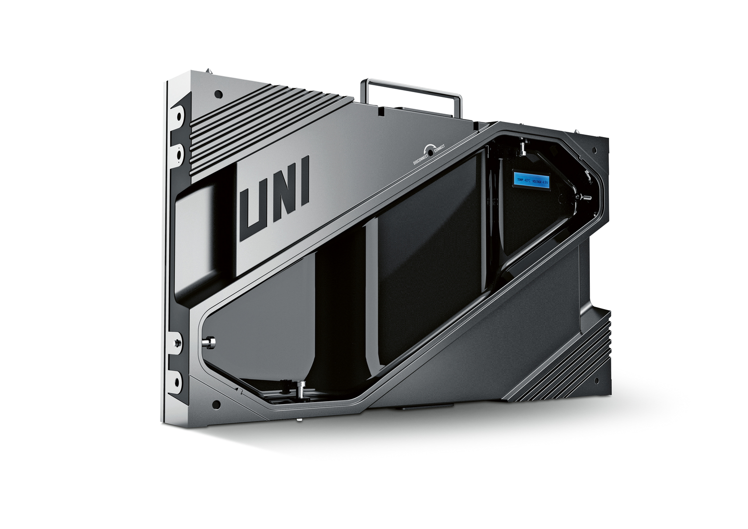 The LED displays of the Upanel Series can be mounted to huge planar video walls. Their high precision is reflected in an extremely small pixel pitch of 0.6 mm and a flatness tolerance of less than 0.05 mm. The display can be installed and maintained from both the front and the back. The distinctive geometric design of the back wall creates an appealing visual effect that seems to extend into infinity when multiple displays are assembled.