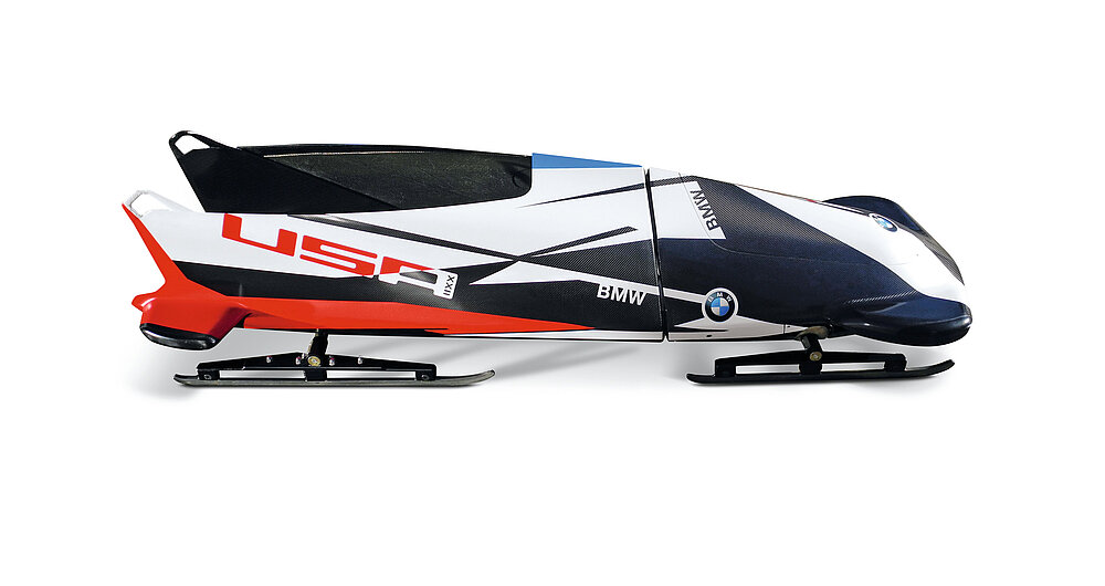 The performance qualities of this bobsled are selfevident at first glance. It looks aerodynamic, fast and sophisticated to the very last detail. The interdisci-plinary design result realised together with BMW also impresses with regard to the technical engineering aspect. Boasting a highly distinctive identity, this bobsled merges the parameters of geometries, kinematics, materials and aerodynamics for optimum performance.