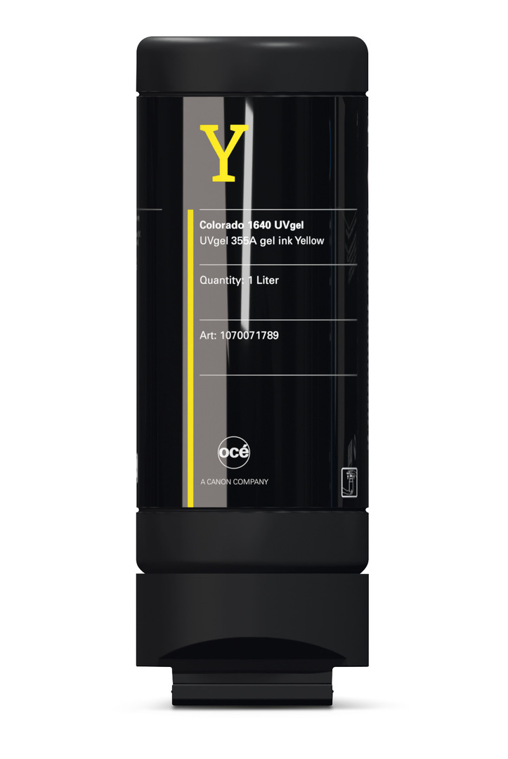 To position the brand Océ Colorado 1640, a new packaging design was developed. The photosensitive ink can be released only after installation. Its ingredients necessitate specific label regulations. Due to the fact that not all product information is required for everyday use, selected details are placed on the rear. The product colour, details and logo are clearly displayed on an area covering a third of the bottle’s circumference. In order to be highly cost-effective, the geometry of the bottle’s interior is shaped to leave as little residue as possible. To avoid mishaps, the bottle is equipped with an RFID chip.